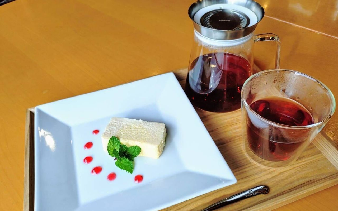 杵築産茶葉を使用したお茶でホッと一息。パウンドケーキや白玉ソフトクリームなどをご用意していますので、ゆったりとした時間をお過ごしください。
